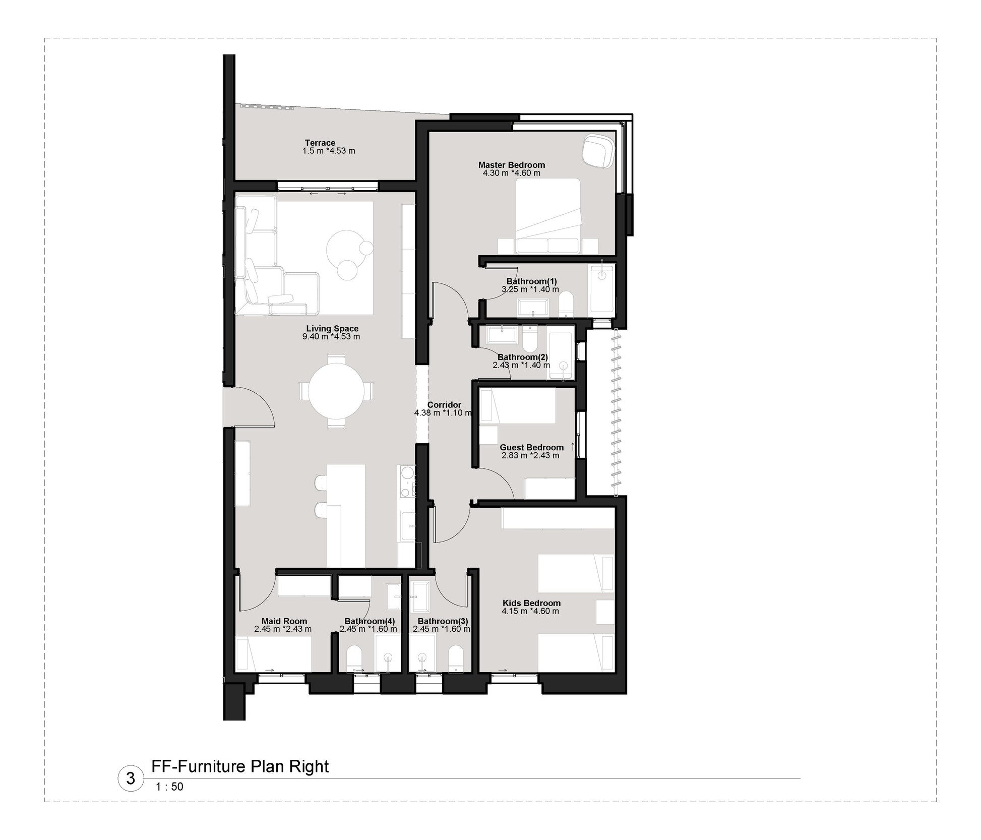 Positioned on the first floor, this 165 sqm corner unit includes a private terrace and 3 spacious bedrooms. Northwest-facing windows provide open views of the pool and landscaped gardens, perfect for elevated yet serene living.